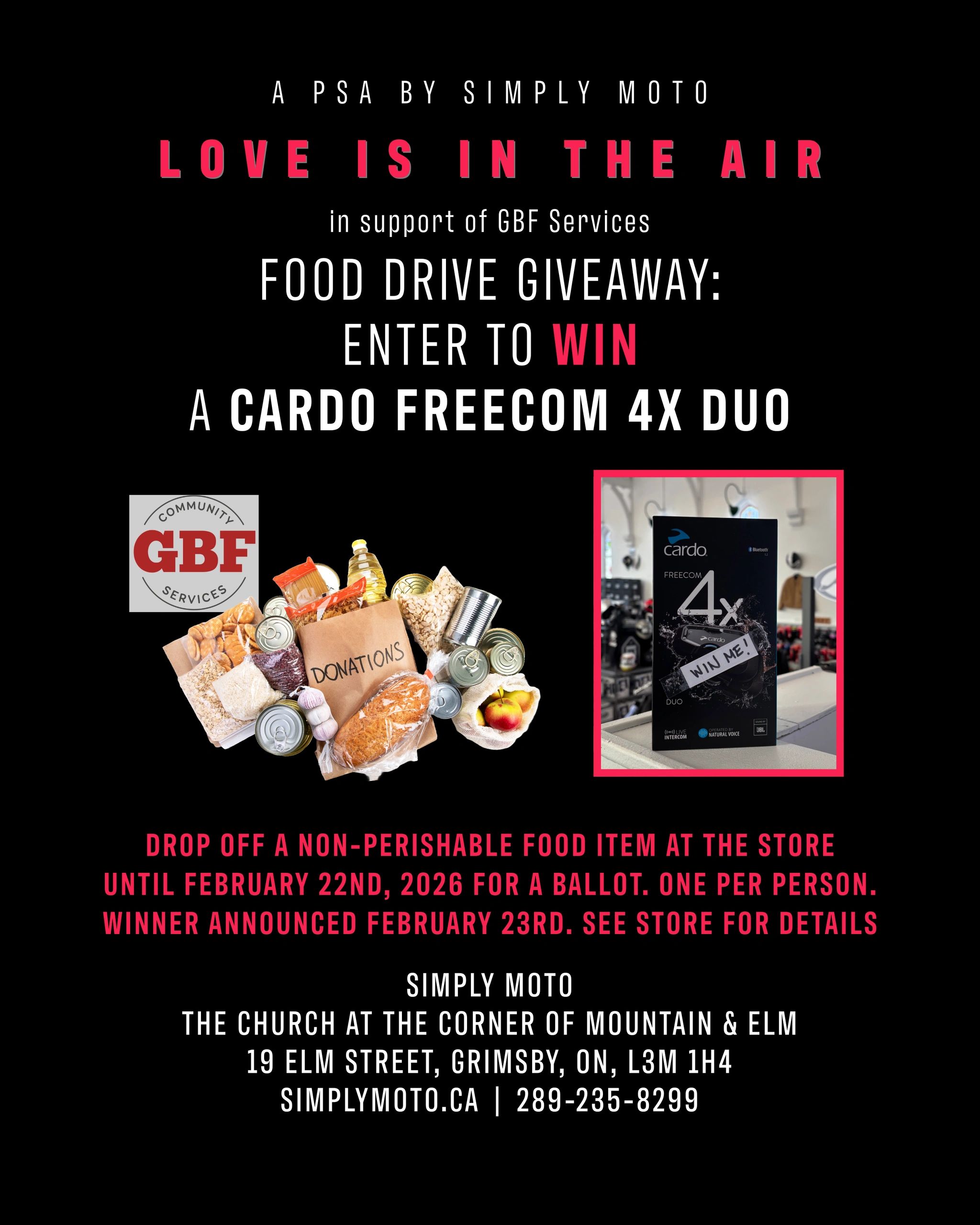 If you are able, please drop by the store with a non-perishable item for our food bank and we will provide you with a ballot for the draw.